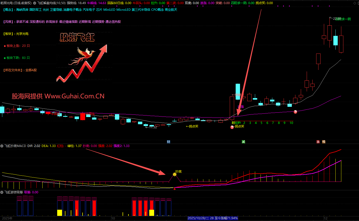 相关简介:通达信【飞虹实战操盘】强化版、1主2副+9个选股、信号全面、实战性强,用于中短线交易决策。