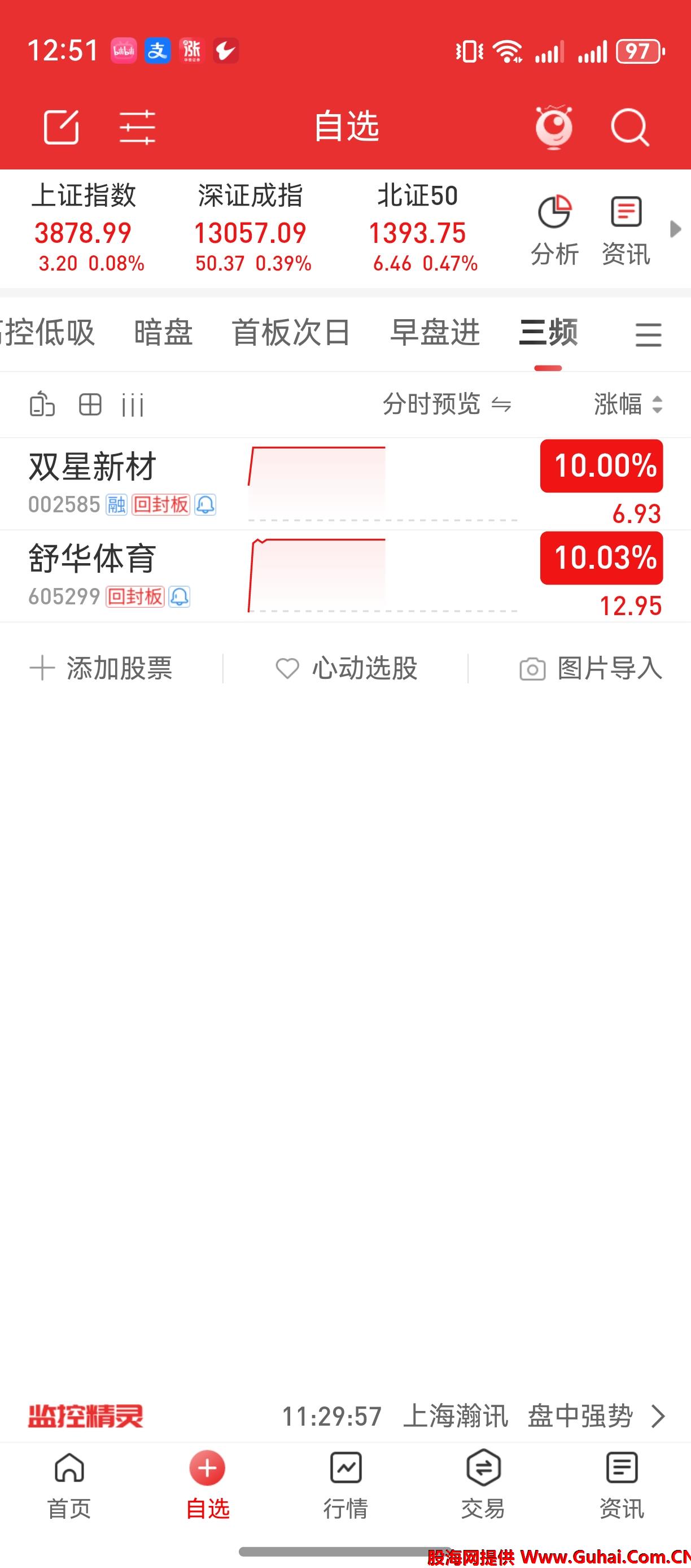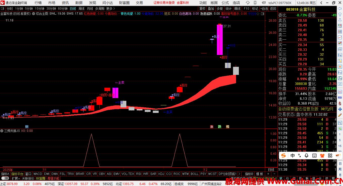 【三频共振选股器】技术指标可以在通达信手机端和电脑端使用,电脑端使用建议采用自动监测方式,下面为手机端导入方式: