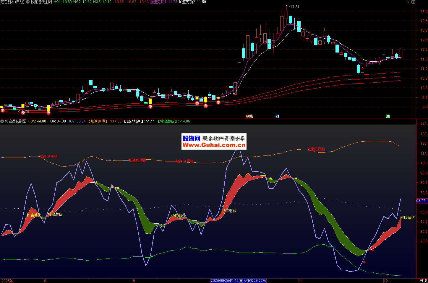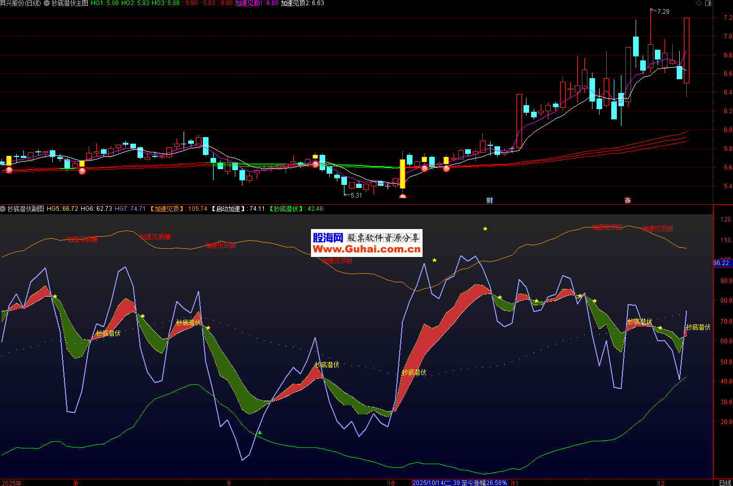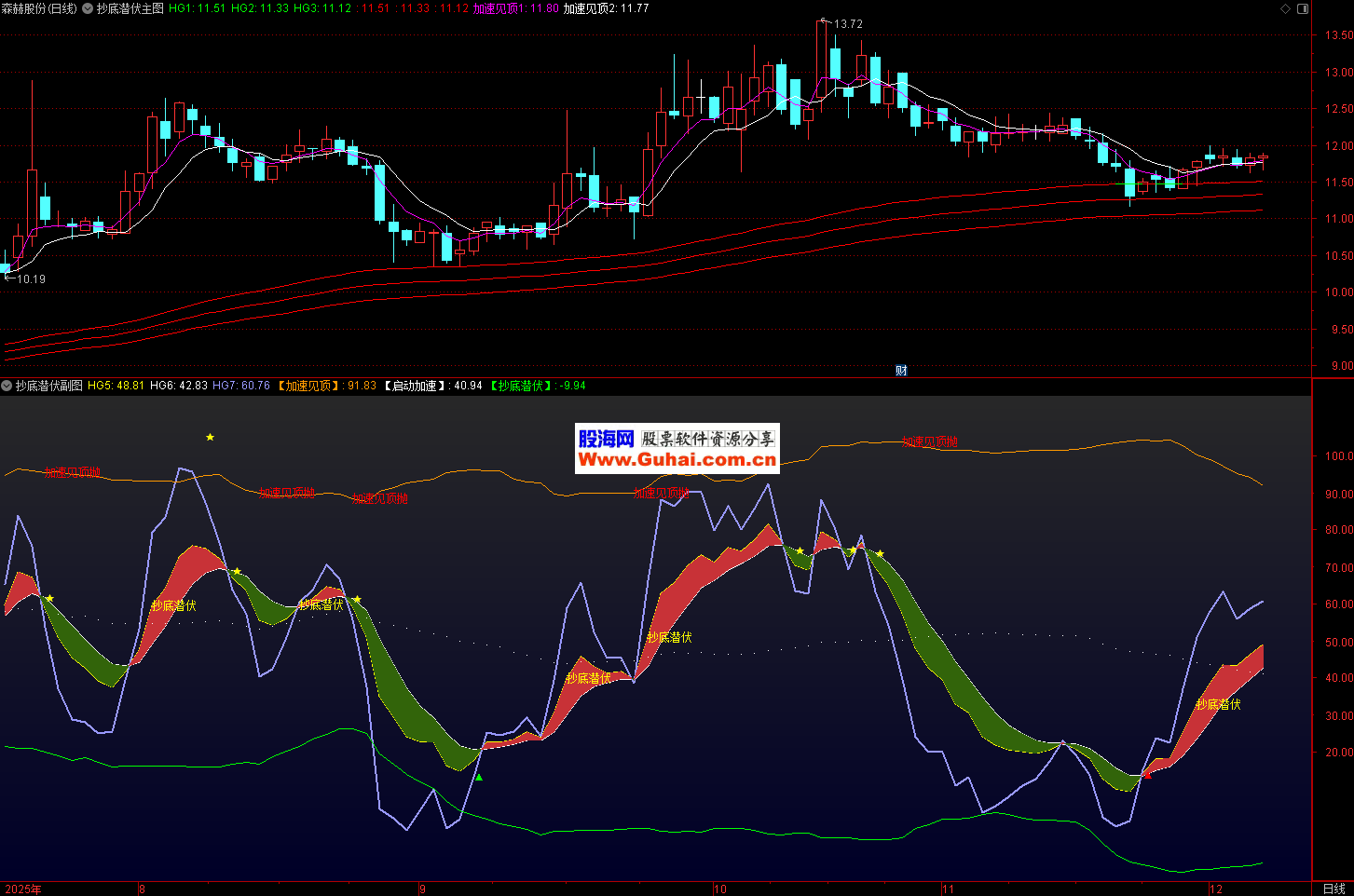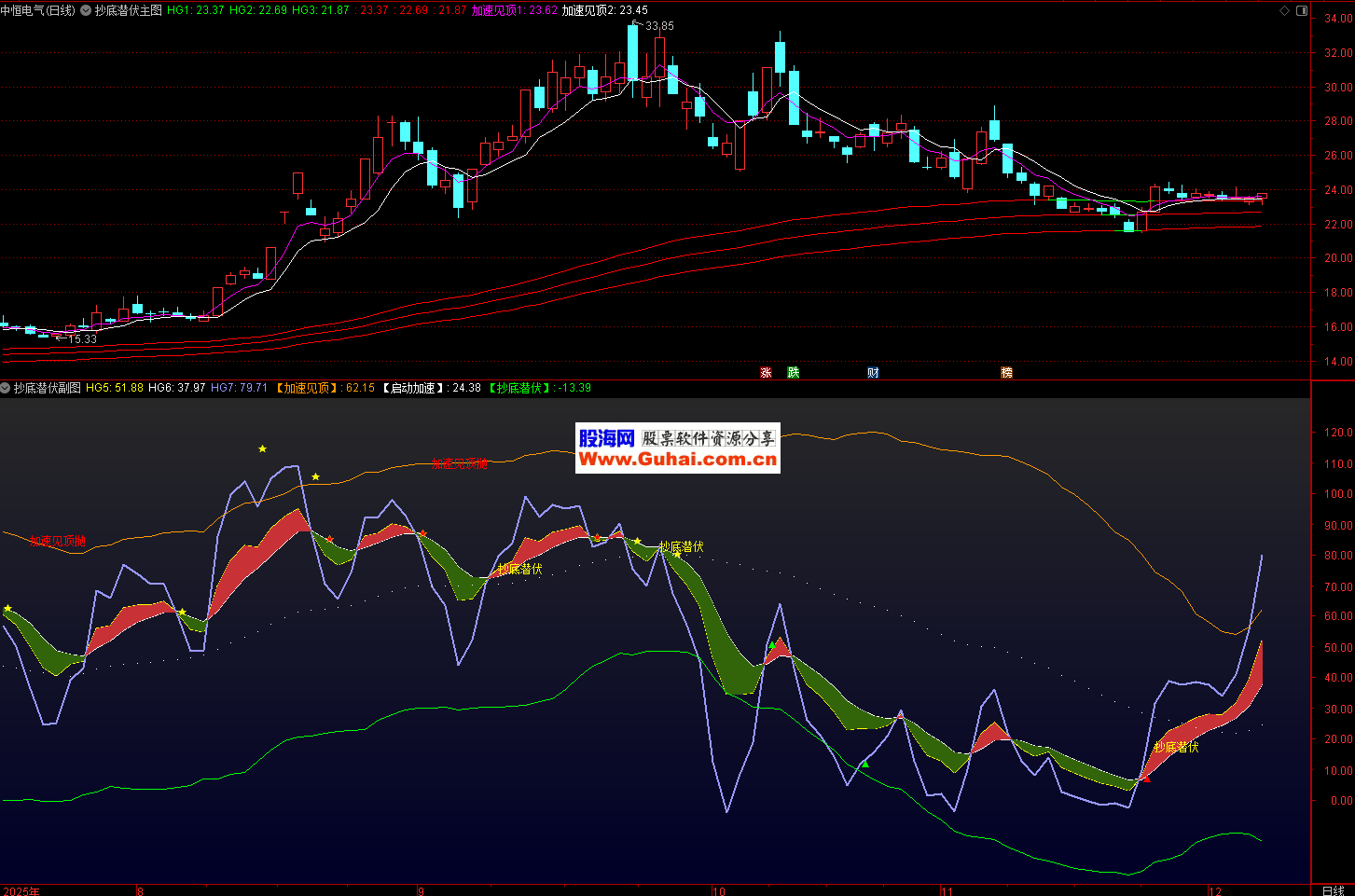 信号确认:结合多周期均线和标准差,确认加速见顶、启动加速和抄底潜伏信号。