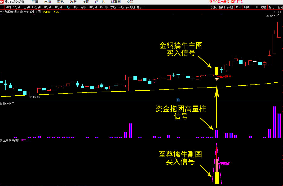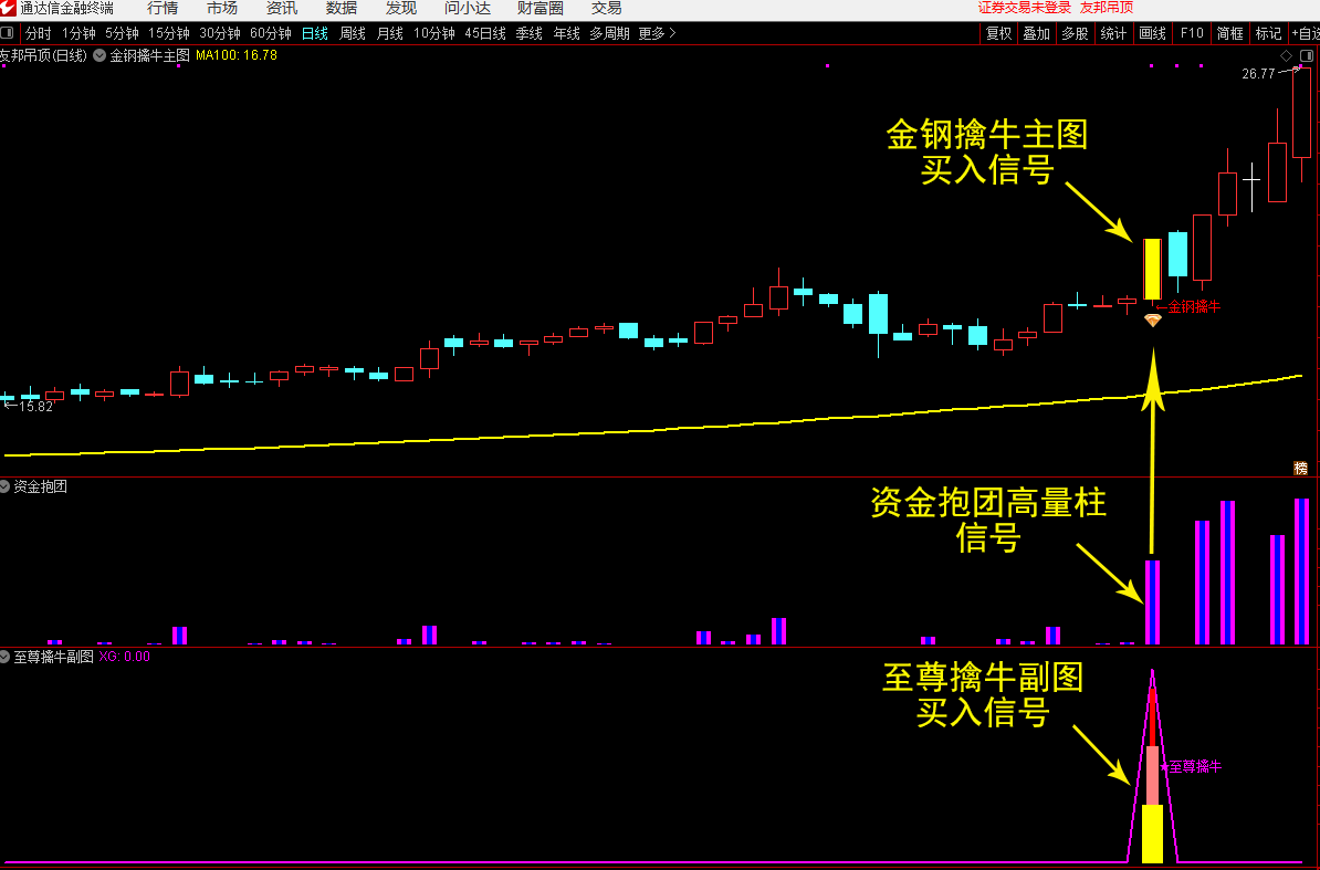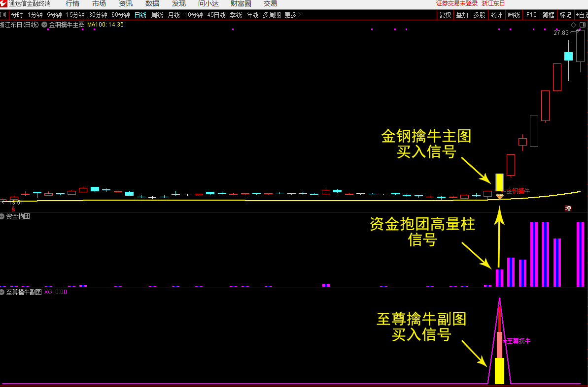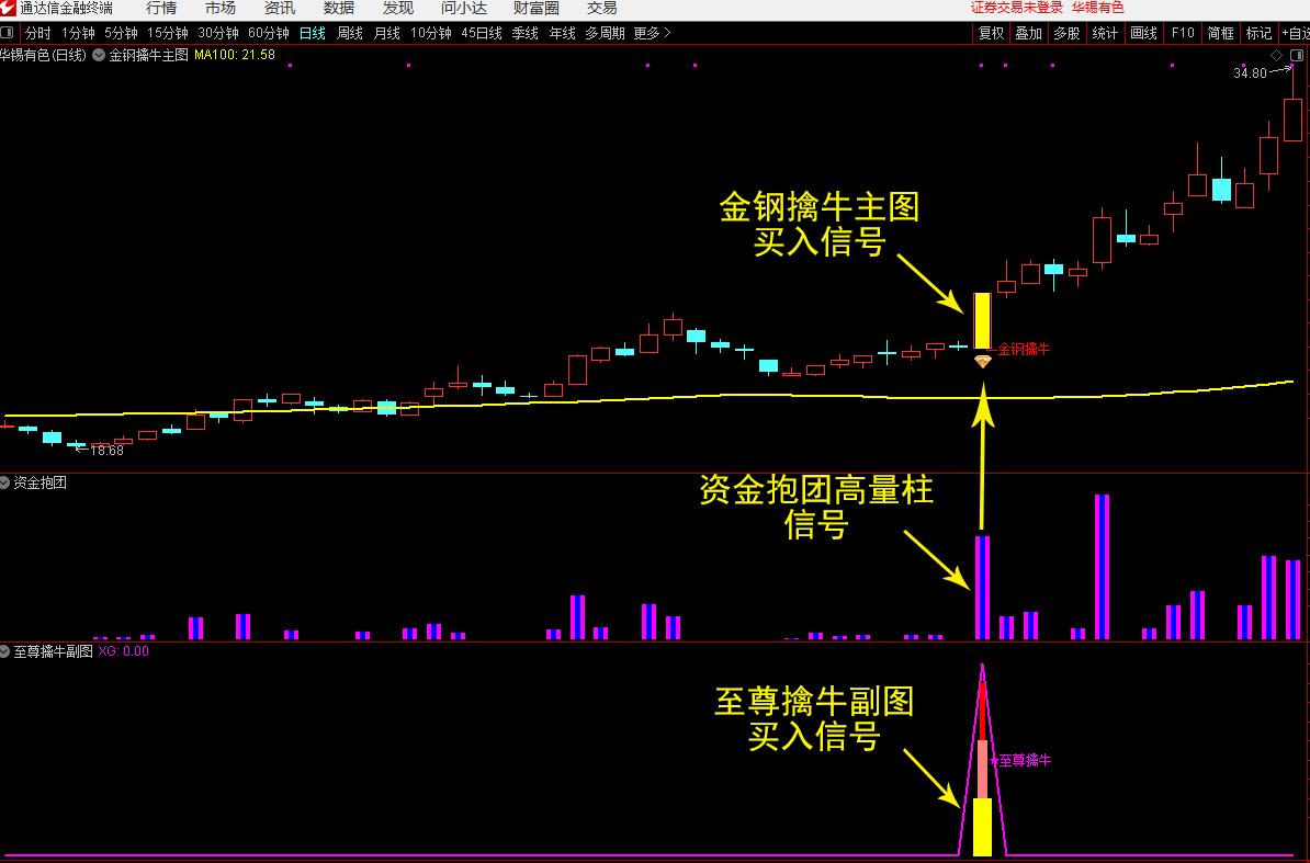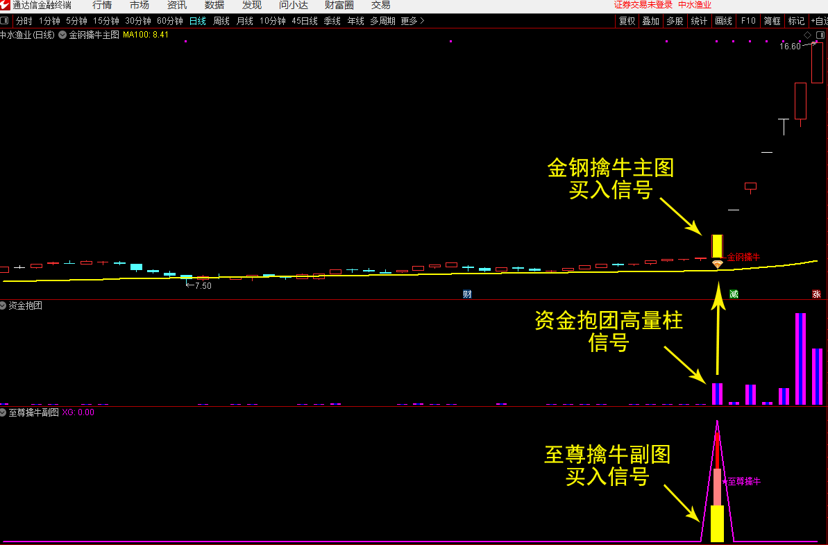 通达信【至尊擒牛】副图+【资金抱团】副图+【金钢擒牛】主图+至尊擒牛选股 无未来函数 信号少不飘移 源码文件分享