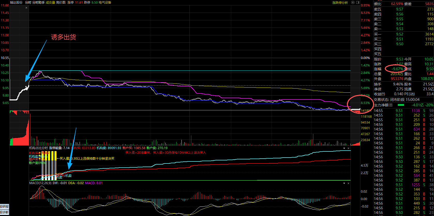 陷阱识别:若竞价高开低走且量能异常,需警惕主力诱多出货。