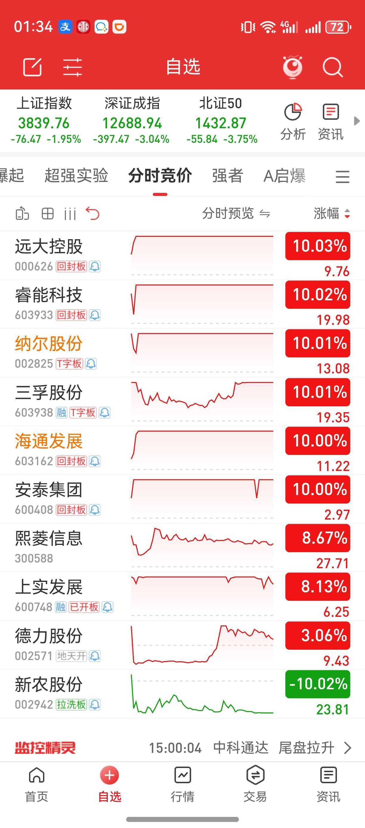 (2)第二步筛选:对选出个股做排序,将将竞价涨幅在3%-5%的作为“心理目标”,排在前面;开票后快速涨停的,一字板的,快速放弃,不是我们的目标。快速回落到3%-5%的和在3%-5%震荡的是我们第一目标,一般有1-3只。